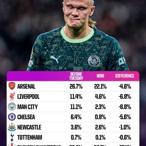 03月12日讯 据Opta超算计算,在淘汰赛之前,英超球队夺得欧冠的概率是59.9%,而在1/8决赛首回合结束后,这一数...
