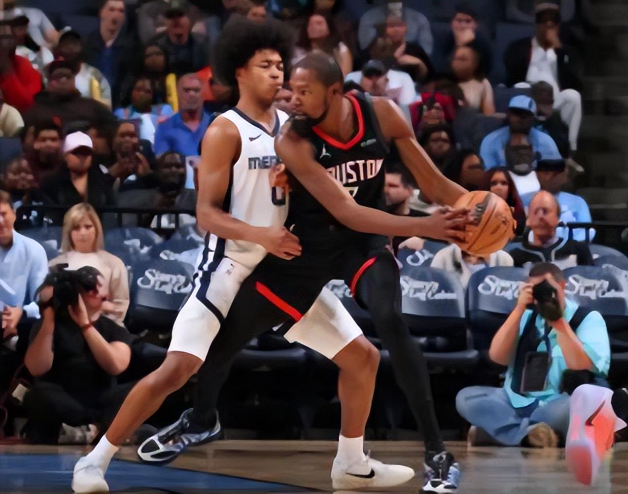 易边再战,小贾伦-杰克逊接连干拔跳投得手,杜兰特标志中距离跳投回应,随后再造威尔斯犯规,火箭追到2分。阿尔达马抢断伊森反击得手后再中大空位三分,一人连拿5分,灰熊重新领先到8分。申京连续强打篮下勾手命中,杜兰特弧顶干拔三分命中,本赛季第35次单场得分20+,三节打完,火箭76-77追到1分分差。