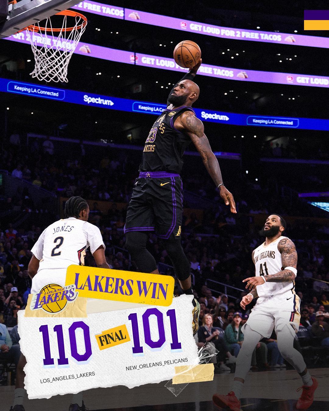 全场比赛,东契奇出战37分钟,22投10中,得到27分10篮板7助攻1封盖,他在比赛中多次低级失误和糟糕的命中率让湖人一度陷入被动,所幸第四节他的关键三分帮助湖人拿下比赛。里夫斯全场出战37分钟,投篮15中4,得到15分8篮板3助攻2抢断2盖帽,他上半场只拿到2分,让湖人在进攻端被鹈鹕各种针对,好在最后一节命中两记关键三分完成救赎。而当东契奇和里夫斯都陷入挣扎的时候,依旧是41岁的詹姆斯站出来扛起了球队。